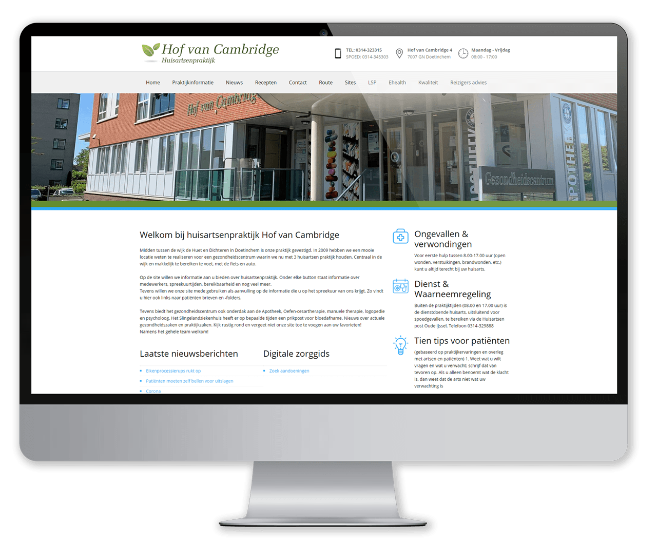 Midden tussen de wijk de Huet en Dichteren in Doetinchem is de praktijk gevestigd. Een mooie locatie voor het gezondheidscentrum waarin nu 3 huisartsen praktijk houden.
