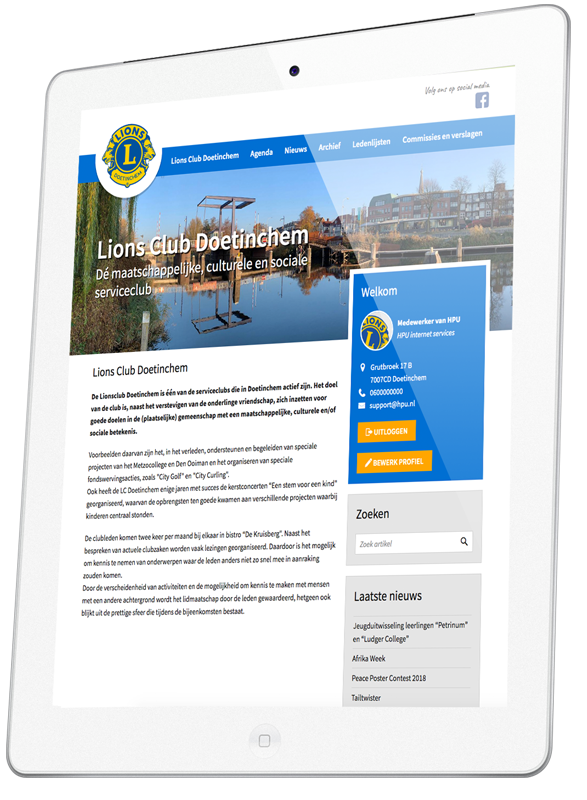 In samenwerking met Lions Club Doetinchem, heeft HPU een compleet nieuwe website ontwikkeld. Deze maatwerk oplossing bestaat uit een dynamische website waaraan diverse onderdelen gekoppeld zijn. Met ons eigen Website Management Systeem hebben we ervoor gezorgd dat de Lions Club Doetinchem zelf op een eenvoudige de gehele website kan beheren.